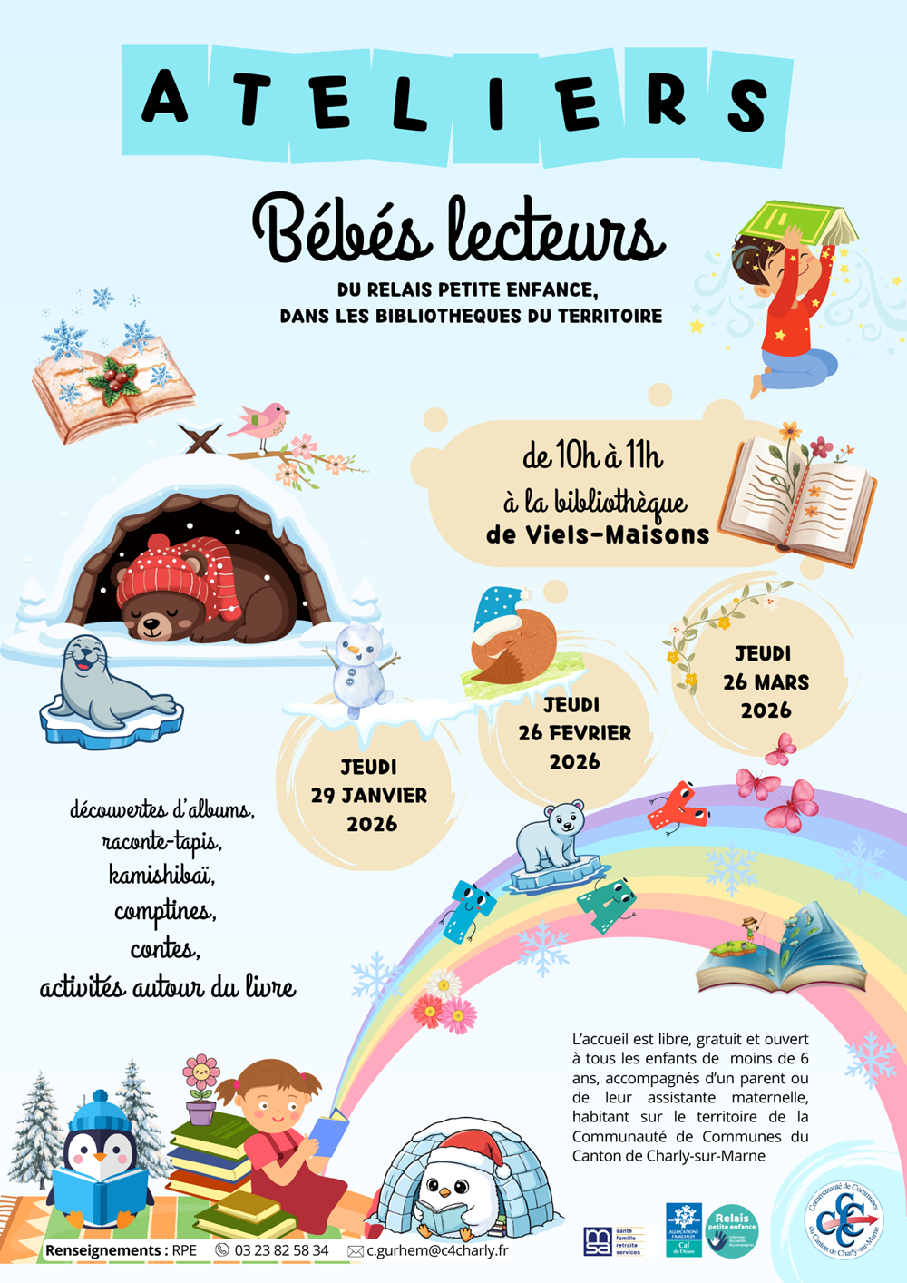 Calendrier des ateliers Bébés Lecteurs - 2026 trimestre 1, à la bibliothèque de Viels-Maisons