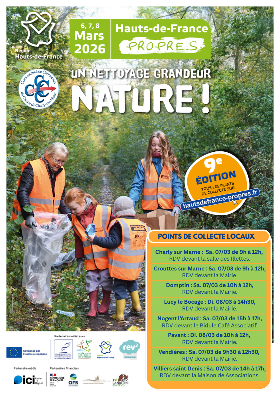 Samedi 7 mars 2026 de 9h à 12h. RDV devant la Mairie.